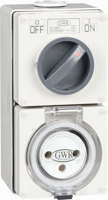 Switched Socket Outlet 3 Round Pin 20A 250V IP66