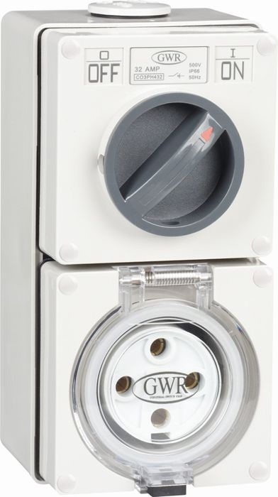 Switched Socket Outlet 4 Round Pin 10A 440V IP66