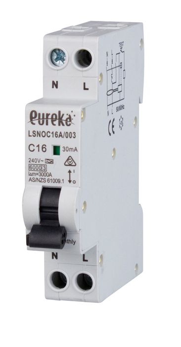 RCBO EUREKA 1P Compact 16A C Curve Type A 6kA 30mA